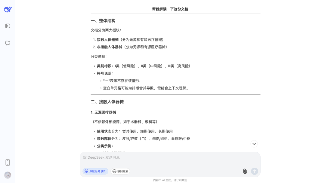 一、引言 随着人工智能技术的飞速发展,其在医疗领域的应用日益广泛,医疗器械注册过程也逐渐引入了 AI 技术以提高效率和质量。DeepSeek 作为一种先进的 AI 模型,在医疗器械注册中展现出了巨大的潜力和价值。 二、DeepSeek 概述DeepSeek 是由深度求索公司研发的人工智能模型,具有知识密度优化、推理能力增强和训练成本优势等特点。例如,其蒸馏版本 DeepSeek-R1-Distill-Llama-8B 在保留原版 16B 模型 97% 性能的同时,参数量压缩至 8B 级别,并且在 MedQA-USMLE 等医学基准测试中,诊断准确率提升 12.7%。 三、医疗器械注册流程及痛点医疗器械注册通常包括技术评估、临床试验、法规合规、注册申报等多个环节。在这个过程中,存在一些痛点,如大量的数据需要处理和分析、法规要求的复杂性、临床试验的设计和评估等,这些都可能导至注册周期长、成本高和风险大。 四、DeepSeek 在医疗器械注册中的具体应用(一)技术评估1、数据分析与挖掘 DeepSeek 可以对医疗器械的技术原理、性能指标、安全性和有效性等方面的数据进行深度分析和挖掘,帮助注册人员快速了解产品的技术特点和优势。 2、技术文档生成 基于其强大的语言生成能力,DeepSeek 能够根据输入的技术参数和要求,自动生成技术文档的初稿,提高文档撰写的效率和质量。 (二)临床试验1、试验设计优化 通过分析大量的临床数据和文献,DeepSeek 可以为临床试验的设计提供优化建议,包括试验方案的制定、样本量的计算、对照组的选择等,提高试验的科学性和可靠性。 2、数据监测与分析 在临床试验过程中,DeepSeek 可以实时监测试验数据,及时发现异常情况并进行预警。同时,它还可以对试验数据进行深度分析,挖掘数据中的潜在规律和趋势,为试验结果的评估提供有力支持。 (三)法规合规1、法规解读与咨询 DeepSeek 能够对医疗器械注册相关的法规、标准和指南进行准确解读,并为注册人员提供法规咨询和指导,确保注册过程符合法规要求。 医疗器械分类判定表源文件 图源:DeepSeek网页版 2、合规性评估 通过对产品信息和注册资料的分析,DeepSeek 可以自动评估产品的合规性,及时发现潜在的合规风险,并提出相应的整改建议。 (四)注册申报1、申报材料准备 DeepSeek 可以协助注册人员准备申报材料,包括撰写申报文档、整理技术资料、制作演示文稿等,提高申报材料的完整性和规范性。 2、申报流程管理 利用其智能流程管理功能,DeepSeek 能够对注册申报流程进行跟踪和管理,及时提醒注册人员完成各项任务,确保申报过程的顺利进行。 五、DeepSeek 在医疗器械注册中的优势1、提高效率 DeepSeek 的自动化和智能化功能可以大大缩短医疗器械注册的时间,提高注册效率。 2、降低成本 通过优化注册流程和减少人工干预,DeepSeek 可以降低医疗器械注册的成本。 3、提升质量 DeepSeek 的数据分析和挖掘能力可以提高注册资料的质量和准确性,从而提升医疗器械注册的成功率。 六、面临的挑战与解决方案1、数据安全与隐私保护 在医疗器械注册过程中,涉及大量的敏感数据,如患者信息、企业商业机密等。DeepSeek 需要加强数据安全和隐私保护措施,确保数据的合法合规使用。 2、模型可靠性与可解释性 DeepSeek 的决策过程和结果需要具有可靠性和可解释性,以便注册人员能够理解和信任其输出。为此,需要对模型进行严格的验证和评估,并提供相应的解释工具和方法。 七、结论DeepSeek 在医疗器械注册中具有广泛的应用前景和重要的价值,可以为注册人员提供有力的支持和帮助。随着技术的不断发展和完善,DeepSeek 将在医疗器械注册领域发挥越来越重要的作用,推动医疗器械行业的创新发展。 在医疗器械注册工作中,还可以用DeepSeek帮助做什么事情呢?欢迎留言交流讨论。 |