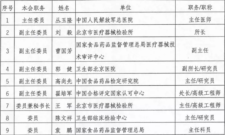 摘要: 第五届全国医用临床检验实验室和体外诊断系统标准化技术委员会由84名委员组成。丛玉隆任主任委员,刘毅、曹国芳、郭健、高尚先、翟培军任副主任委员,王军任委员兼秘书长,秘书处承担单位为北京市医疗器械检验所。