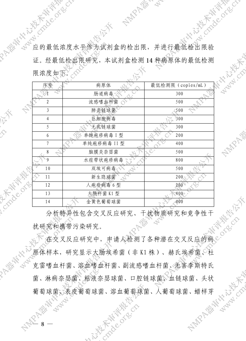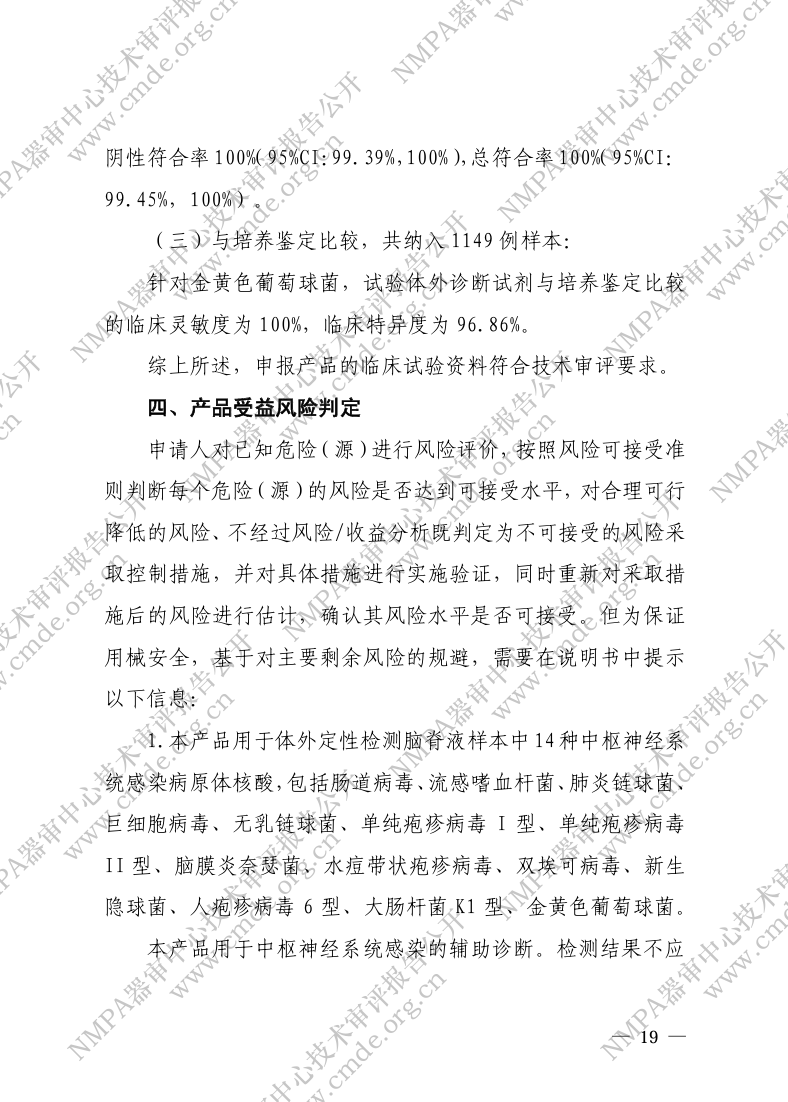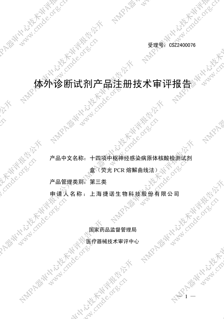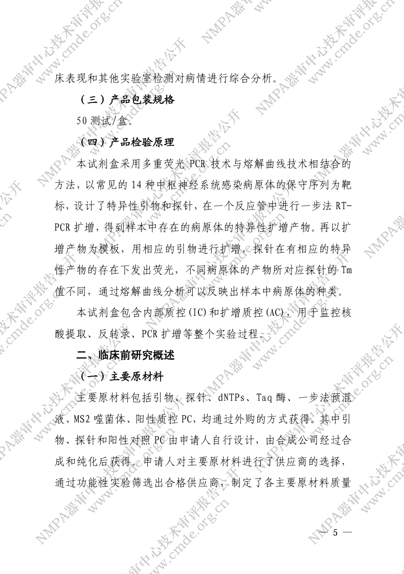 今天捷诺又出爆品:十四项中枢神经感染病原体核酸检测试剂盒获批上市。 这是国内企业获得的第一张由国家药监局批准的,用于中枢神经系统感染辅助诊断的三类医疗器械注册证。该试剂盒可检测脑脊液样本中14种中枢神经系统感染(脑炎/脑膜炎)病原体核酸,用于中枢神经系统感染(脑炎/脑膜炎)的辅助诊断,将有效解决临床对于中枢神经系统感染病原体诊断的难题。FilmArray ME从2015年美国FDA Denovo上市,到2018年2月进入国家创新通道,当年10月启动临床,最终于2022年8月5日正式获得NMPA三类注册证。进入国家创新通道尚且花费4年时间,中间遇到千难万苦也可想而知。想必捷诺在此投入的人力、物力财力不尽其数,后续不管市场表现如何,也得到了一个里程碑式的进展。奈何在FilmArray中国市场非常叫好,但是没有机会去叫座。所以后续非常看好捷诺产品在更多医院开展,造福患者。FilmArray和捷诺都选择14种靶标,绝大多数病原相同。FilmArray ME用于体外定性检测具有脑膜炎及/或脑炎体征及/或症状的人群的脑脊液 (CSF)样本中的 14 种细菌、病毒和隐球菌的核酸。包括:大肠埃希菌K1株、流感嗜血杆菌、单核细胞增生李斯特菌、脑膜炎奈瑟菌(有荚膜)、无乳链球菌、肺炎链球菌;巨细胞病毒、肠道病毒、单纯疱疹病毒1 型、单纯疱疹病毒2 型、人疱疹病毒6 型、人双埃可病毒、水痘-带状疱疹病毒;新型隐球菌(新生/格特)。捷诺选择的7种病毒:肠道病毒、巨细胞病毒、单纯疱疹病毒I型、单纯疱疹病毒II型、 水痘带状疱疹病毒、双埃可病毒、人疱疹病毒6型;6种细菌:流感嗜血杆菌、肺炎链球菌、无乳链球菌、脑膜炎奈瑟菌、大肠杆菌 K1、金黄色葡萄球菌;1种真菌:新生隐球菌。两者组合覆盖靶标基本一致,就一个金黄色葡萄球菌与单核细胞增生李斯特菌的差异。 两家公司选择的技术也很类似:FilmArray ME为封闭巢式多重PCR熔解曲线法,捷诺为荧光PCR熔解曲线法。 关于脑炎/脑膜炎的可以参考以下两篇文献: 1. 标准与规范 | 病毒性脑(膜)炎病原体诊断技术应用专家共识 2. 【标准·方案·指南】儿童社区获得性细菌性脑膜炎诊断与治疗临床实践指南(2025) 未来以来,祝捷诺有更好的发挥空间。 好产品更需要优秀人才,如果你想加入捷诺,我可以帮忙内推。 附上评审报告供大家参考: