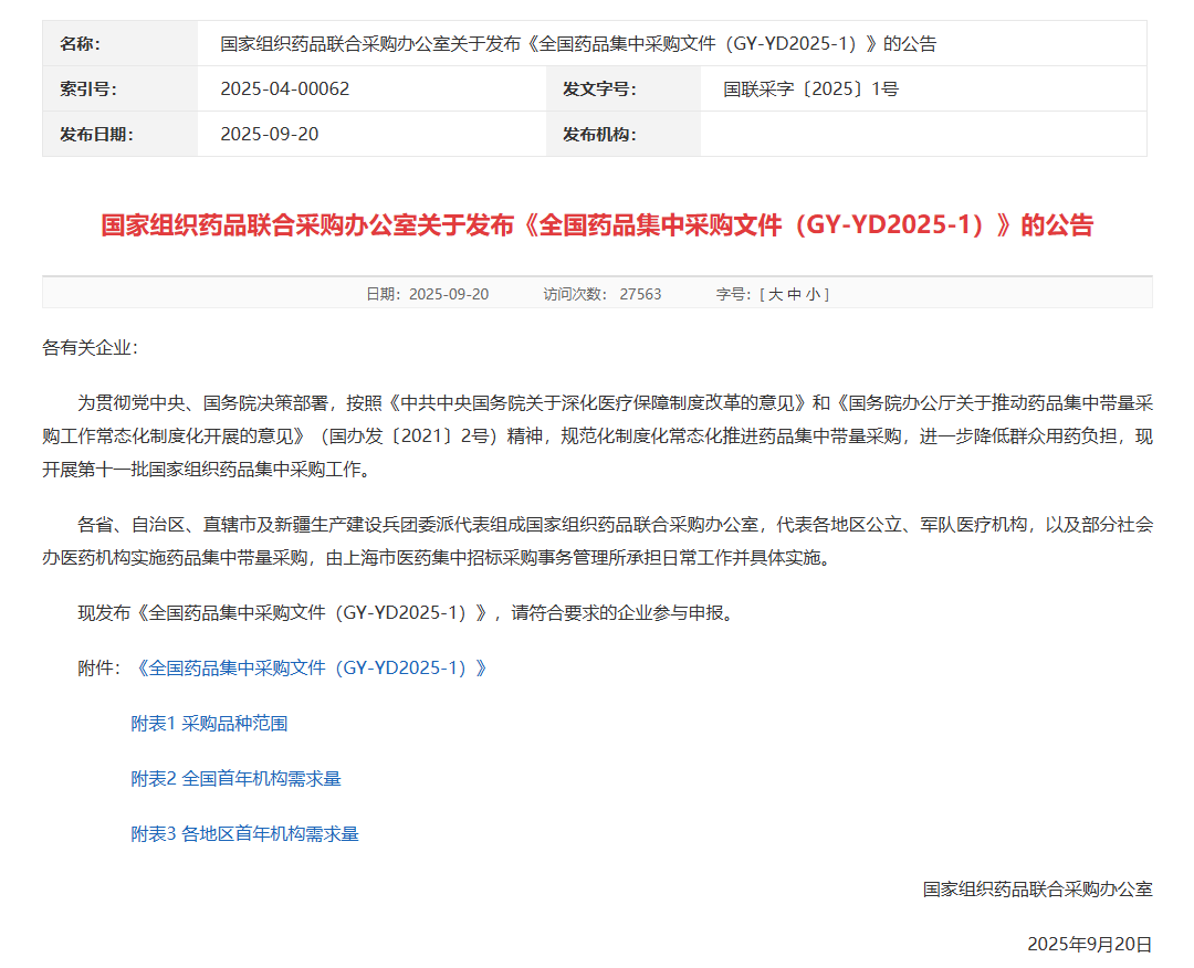 9月20日,国家组织药品联合采购办公室发布第十一批国家组织药品集中采购文件。本次集采方案制定和修改过程中,充分遵循了“稳临床、保质量、防围标、反内卷”的原则。 一、关于“稳临床”。保障临床用药需求是集采的基本目标,也是优化集采措施的重点。 一是优化医疗机构报量方式。既往的化药集采中,医疗机构按药品通用名报量,第11批集采中,医疗机构既可像以前那样按通用名报量,也可按具体品牌报量。医疗机构报量的品牌如果中选,将直接成为该医疗机构的供应企业,提高临床需求与供应的匹配度。报量规则的完善得到了广大医疗机构和企业的支持。有4.6万家医疗机构参加了本次集采报量,报量的77%具体到了品牌。 二是合理确定约定采购量。集采把医疗机构报量的60%~80%作为企业竞争标的,这部分也即是医疗机构的约定采购量,剩余部分仍由医疗机构自主选择品牌。 三是采取更贴近临床用药实际的中选规则。对于医疗机构需求大但报价未入围的企业,如接受入围企业的中选价格,给予中选机会,鼓励头部企业积极中选,更好满足临床需求。 四是关注儿童药供应保障。会同相关部门和专家专门论证儿童适宜小规格药品的比价规则,对小规格的口服溶液、干混悬剂、颗粒剂、注射剂等儿童适宜剂型,用“含量差比价”替代“装量差比价”,调整后小规格价格有所放宽,鼓励儿童小规格供应。 二、关于“保质量”。本次集采充分征求并采纳药监部门、市场监管部门的意见,在保证公平的基础上,对投标企业的质控水平提出了更高要求。 一是要求企业有一定生产经验。要求投标企业或其委托生产企业有2年以上同类剂型生产经验,并且投标药品的生产线通过药品GMP符合性检查。 二是对生产质量考察的要求。将原来的“投标药品”2年内未发生违反GMP的情况,扩展到“投标药品的生产线”2年内未发生违反GMP的情况。 三是优先考虑临床认可、质量稳定的企业。企业报价相同时,医疗机构报量多,或未发生生产工艺、原料药、主要辅料等重大变更的企业优先。 三、关于“防围标”。此次集采进一步完善了防范围标行为的措施: 一是继续对关联企业的投标约束。对于在股权、管理、注册批件转让、委托生产等方面存在紧密关系的企业,投标时视为1家。 二是引入“首告从宽”机制。对于首个提供围标线索及有效证据的企业,以及围标事件调查过程中首个主动承认参与围标的企业,可依法依规从宽处理,破除围标企业间的利益同盟。 三是加大围标行为防范打击力度。对于国家组织药品集采中围标串标的企业,除按采购标书有关条款列入“违规名单”外,还将根据医药价格和招采信用评价制度,按最严格规定顶格处置。 四、关于“反内卷”集采秉持公开透明、公平公正的市场化竞争机制,企业自愿参加、自主报价,同时,旗帜鲜明地反对过度内卷。 一是优化最高有效申报价形成规则。在大部分企业可中选的“弱淘汰”规则下,最高有效申报价是防范“大幅涨价”中选极端事件的重要措施。同时,充分吸纳行业协会和企业建议,省级集采中“独家中选”产生的较低价格不纳入最高有效申报价计算,避免个别品种的最高有效申报价过低。 二是优化价差控制“锚点”。为保证公平,本次集采继续对中选价差作一定控制。同时,为防范个别企业报出异常低价“熔断”其他正常报价的企业,导至整个品种的中选价过低,本次集采优化了价差控制“锚点”的选择,不再简单选用最低报价。当“最低价”低于“入围均价的50%”时,将以“入围均价的50%”为价差控制的锚点。我们请专家对第7—10批集采200余个品种的报价情况进行了模拟,在最高报价与最低报价大于1.8倍个品种中,如按现有规则,有1/4左右的品种触发调高“锚点”,相对于最低报价,平均调高34%,最大调高170%,将有效发挥“反内卷”的作用。 三是要求企业不低于成本报价。要求每家投标企业做出不低于成本报价的承诺,对于低于“锚点价”的企业,要求其对报价合理性作出声明,解释具体成本构成,包括制造成本、期间费用、销售利润等,主导回应社会对低价中选的顾虑。 此外,本次集采将进一步强化中选结果执行。要求中选企业作为供应保障第一责任人,及时响应医疗机构订单并完成配送;要求医疗机构优先采购中选产品,按协议按时完成约定采购量,并履行及时结算货款义务。 来源 | 国家医保局 |