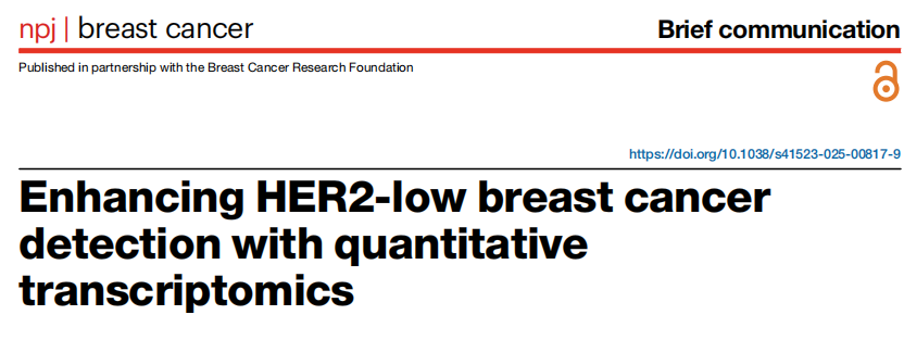 研究结果强调了在HER2表达过低而标准免疫组化无法提供可靠结果的情况下定量ERBB2 mRNA的重要性。作者建议整合多组学数据优化HER2-low分类标准,并推动RNA-Seq在临床试验中的应用,可在临床试验中系统地招募HER2-low患者来进行验证。此外,需探索ERBB2表达与其他生物标志物(如HR状态)的交互作用。