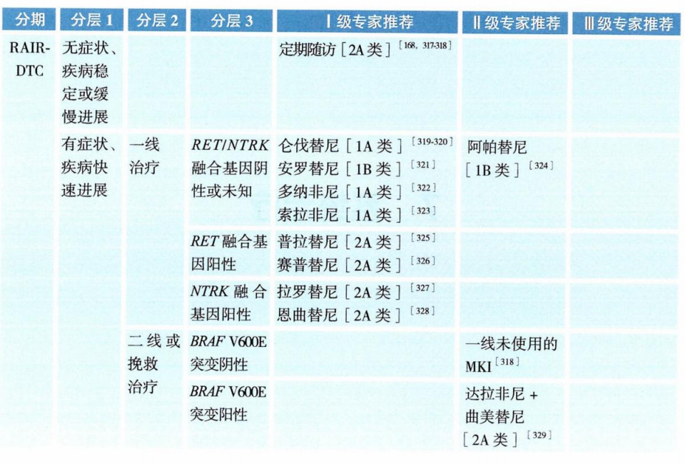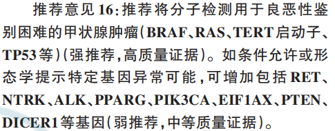 | 甲状腺癌是内分泌系统和头颈部最常见的恶性肿瘤,起源于甲状腺滤泡上皮细胞或滤泡旁细胞。根据起源细胞分为滤泡细胞源性甲状腺癌和滤泡旁细胞源性甲状腺癌(即甲状腺髓样癌,约占1-5%),滤泡细胞源性甲状腺癌包括分化型甲状腺癌(DTC,约占90-95%左右)、嗜酸细胞癌(OCA)、低分化癌(PDTC)和未分化癌(ATC,占比<2%);其中DTC又分为乳头状甲状腺癌(PTC)和滤泡状甲状腺癌(FTC)。过去 30年中,全球范围内甲状腺癌发病率大幅增加,成为十大恶性肿瘤之一。根据国家癌症中心2022年数据,新发甲状腺癌病例为46.61万例,新发病例排名第三位,仅次于肺癌和结直肠癌。今天,我们就聊聊甲状腺癌基因检测的相关内容,希望可以帮助有需要的朋友。如有疑问,欢迎文末添加微信交流。明确诊断是肿瘤治疗的前提,超声引导下细针穿刺(FNA)是甄别甲状腺结节良恶性的重要方法,利用术前FNA可有效提高甲状腺手术恶性肿瘤比例,避免不必要的手术。FNA检测结果分为五类(表2)。  其中I类II类分别为无法诊断或标本不满意、良性,VI类为恶性肿瘤。而III类至V类则为不确定,给临床带来了巨大挑战;研究表明,约有25%的甲状腺结节无法通过FNA确认良恶性,在这25%无法确认良恶性结节的患者中,大多数人选择了手术,但约有80%最终确认为良性,接受了不必要的甲状腺切除手术;因此,III至VI类的良恶性判断决定了甲状腺结节的管理方案制定。近年来,基因检测在协助甲状腺结节良恶性判断取得了较大的进展,如BRAF在乳头状甲状腺癌中突变率高达80%,BRAF突变甲状腺结节恶性风险达99.8%;另外,RAS突变、RET重排、TERT启动子突变及TP53突变等也与甲状腺癌有较强的关系。因此甲状腺癌CSCO指南,CACA指南,NCCN指南及甲状腺癌术后病理诊断专家共识(2025版)均推荐经FNA无法确认良恶性的甲状腺结节进行BRAF、RAS、TERT启动子、TP53等基因进行检测。 外科手术是甲状腺癌最重要的治疗手法,分化型甲状腺癌(DTC)切除术式主要包括甲状腺全切术和甲状腺腺叶切除术,两种方法各有优缺点。在临床手术过程中,部分DTC是选择腺叶切除还是甲状腺全切还存在一定争议,研究表明,携带BRAF基因突变、BRAF&TERT共突变及BARF/RAS&TERE共突变等的甲状腺癌患者有较高的复发风险,优先选择甲状腺全切+同侧中央淋巴结清扫,甲状腺癌基因检测与临床应用广东专家共识(2020版)指出,在手术前,可结合BRAF、RAS合并TERT、PIK3CA突变情况判断复发风险程度,制定个体化手术方案。放射性碘是分化型甲状腺癌重要的治疗手段,可根据适应症、目的和方法的不同分为清甲(清除手术后残留于甲状腺床的甲状腺组织,便于长期随访及肿瘤复发检测)、辅助治疗(辅助治疗降低复发风险等)及清灶治疗(对无法手术切除的局部或远处转移病灶的治疗,延缓疾病进展,旨在改善DSS和OS)。然而部分分化型甲状腺癌出现碘抵抗现象,这部分患者称为放射性碘难治性分化型甲状腺癌(RAIR-DTC),研究表明,BRAF V600E、RET、TERT启动子、RAS及TP53等基因突变与RAIR相关。放射性碘难治性分化型甲状腺癌诊治管理指南(2024版)建议DTC患者进行BRAF等分子检测一直到RAIR的预判和后期治疗。 对于不可手术或放射性碘难治的甲状腺癌患者,靶向治疗是重要的治疗方式。在甲状腺癌中,最常见的突变基因为BRAF V600E突变、RET融合及NTRK融合。与结直肠癌一样,BRAF V600E突变同样是甲状腺癌常见的突变位点之一,2025CSCO滤泡上皮来源甲状腺癌诊疗指南及甲状腺癌NCCN指南指出,携带BRAF V600E突变的甲状腺癌患者可以使用达拉非尼联合曲美替尼进行治疗。除了上述用于BRAF V600E突变的达拉非尼联合曲美替尼外,甲状腺癌相关指南还推荐了两个泛靶点相药物进行甲状腺癌的治疗,包括推荐使用恩曲替尼、拉罗替尼及洛普替尼用于治疗携带NTRK融合的甲状腺癌患者,推荐使用赛普替尼和普拉替尼用于携带RET融合的甲状腺癌患者。与乳腺癌一样,部分甲状腺癌也与遗传相关,家族性遗传甲状腺癌包括遗传性甲状腺髓样癌(HMTC)和家族性甲状腺非髓样癌(FNMTC)。遗传性甲状腺髓样癌(HMTC):研究表明,约有25-30%的甲状腺髓样癌为HMTC,HMTC又分为多发性内分泌肿瘤2A型(MEN2A)和多发性内分泌肿瘤2B型(MEN2B),约有95%的HMTC由RET基因突变导至,95%的MEN2A患者的RET基因在10号外显子的第609、611、618、620位以及11号外显子的第634位密码子发生突变。95%的MEN2B患者携带RET基因第16号外显子M918T突变,不足5%的MEN2B患者携带15号外显子A883F突变。家族性甲状腺非髓样癌(FNMTC):目前尚未发现FNMTC的特异性致病基因。综合征型FNMTC与已知的肿瘤易感基因相关,如APC基因是FAP综合征的致病基因。而在非综合征型FNMTC致病基因的研究中,已发现DICER1、FOXE1、PTCSC2、POT1、TCO、NMTC1 等基因与FNMTC的易感性相关。中国家族遗传性肿瘤临床诊疗专家共识(2021年版)—家族遗传性甲状腺癌建议相关甲状腺癌患者进行RET、APC等基因的筛查以确认遗传风险。以上就是甲状腺癌基因检测的诸多内容,我们欣喜的看到基因检测在甲状腺结节良恶性判断、手术方案制定、放射性碘治疗、靶向治疗及遗传筛查发挥着重要的作用,为甲状腺结节、甲状腺癌的进一步治疗提供强有力的支持,改善相应患者的生活状态。甲状腺细针穿刺细胞病理学诊断专家共识(2023版)放射性碘难治性分化型甲状腺癌诊治管理指南(2024版)中国家族遗传性肿瘤临床诊疗专家共识(2021年版)—家族遗传性甲状腺癌甲状