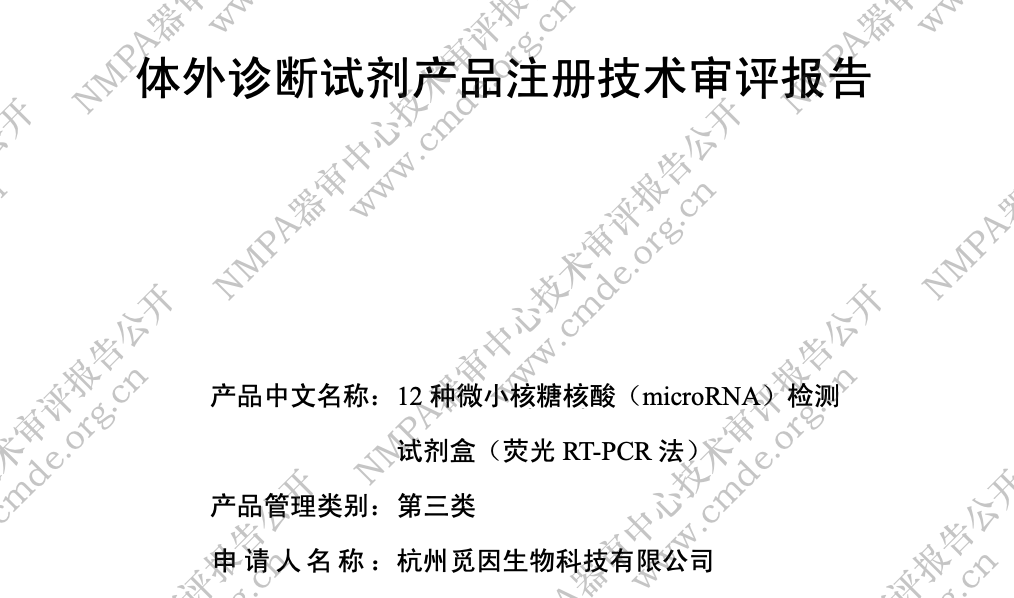 产品名称:12 种微小核糖核酸(microRNA)检测试剂盒(荧光 RT-PCR 法)