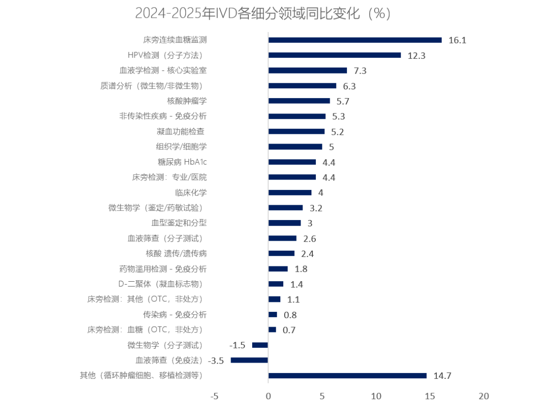相较于去年的全球情况,2025年全球 IVD 市场规模将达到 1130 亿美元,预计年复合增长率 (CAGR) 将达到5%,到 2030 年将超过 1400 亿美元。 值得庆幸的是,IVD对于医疗的价值被低估,这有助于激发IVD在医疗领域的潜力。目前全球的认知和资源分配被严重低估,体外诊断应该对人类健康有更大的价值。 IVD被广泛用于70%的医疗决策,很多的研究支持这一说法,同时,98%的医生会根据检验指标改变治疗决定,虽然IVD在医疗领域的价值如此之高,但是检验目前仅仅占据美国医疗保健支出的2%,这也使得这篇报告更看好IVD市场。 其实很多人质疑Kalorama 数据的真实性,我也曾经怀疑过,其实这里的统计口径可能有问题,比如,进口可能统计出口过来的价格,并不是进口品牌出给代理商的价格,还有我们国内出口的价格,会有很大的出入,尤其是进口品牌,差的可能是几百亿,这里不纠结数据,至少这篇报告可以把全球的IVD趋势,给大家做一个详细的汇总。 因篇幅过长,报告内容太多,我就统计一些大家感兴趣的话题,因为报告站的角度是全球,很多和国内的细分市场统计口径不同,如果需要详细的中英文原文,可以文末加微信联系我。 Kalorama Information 的市场分析揭示了令人鼓舞的消息:体外诊断 (IVD) 市场预计在未来五年预测期内的增长速度将高于上一版预测,并且预计每年都会实现增量增长。2025 年全球 IVD 市场规模将达到 1130 亿美元,预计年复合增长率 (CAGR) 将达到5%,到 2030 年将超过 1400 亿美元。 北美、西欧和日本这三大主要市场分别占2025年体外诊断市场总量的44%、27%和5%,合计占全球销售额的76%。到2030年,这些地区将继续占据主导地位,保持76%的市场份额。总体而言,预计发展中市场年增长率为 5%,而发达国家年增长率约为 4.8%。 随着发达国家体外诊断市场日趋成熟,体外诊断公司也纷纷将目光投向发展中国家。这些国家的收入和生活水平不断提高,预计将催生出一批注重健康的新人群,他们对优质医疗服务的需求也将日益增长。Kalorama Information 此前的重点是金砖国家,但如今已确定了12个值得关注的新兴市场,包括:巴西、中国、印度、印尼、马来西亚、墨西哥、沙特阿拉伯、南非、韩国、泰国、土耳其、越南。 2025年,中国体外诊断市场规模估计接近63亿美元,预计年增长率为7.5%,到2030年达到90亿美元。血糖监测是中国体外诊断市场的一个主要关注领域,约占体外诊断市场价值的22%。 同时中国的VBP也是报告关注的点;然而报告的看法却和我们不同,报告认为虽然初期影响较为负面,但该计划的长期目标是通过大幅降低成本和改善医疗服务的可及性来刺激更高的检测量。 1、关税战对IVD行业的潜在影响 和之前报告的不同在于,此次报告首先考虑政治因素对于行业的影响,根据报告的推测,由于许多耗材和专用试剂需要进口,制造成本可能会增加。最终用户价格可能会上涨,制造商可能会将额外成本转嫁给分销商和客户。 原材料采购成本可能会增加,创新速度也会减缓,新的体外诊断 (IVD) 系统或检测方法的上市也会推迟。 关税对体外诊断(IVD)市场的影响可能有所不同,因为其影响程度并不统一;这取决于供应链的全球化程度、耗材与仪器的价值比重,以及买家对价格的敏感度。总体而言,行业专家推测,受关税影响最大的领域可能是分子诊断、即时诊断(POC)和基因检测,因为这些领域依赖专业组件。受影响较小的领域可能是常规组织学/细胞学和一些临床化学领域,因为这些领域对专业组件的依赖程度较低,对单一国家供应商的依赖程度也较低。 2、AI和IVD 目前,FDA 批准的医疗保健算法超过 1,020 种,其中大多数涉及医学成像。大多数 AI 集成都集中在分子和数字病理学应用上。临床化学和免疫学是下一步发展方向。数字病理产品和糖尿病管理设备是首批搭载数据解读应用程序的产品。 过去几年,医疗保健经历了一场变革,从纸质病历系统转向电子病历,并融入了数字健康监测设备和其他先进的患者筛查系统。这些进步带来了数据爆炸式增长,而人工智能技术是处理和分析这些数据的最佳途径。推动这些人工智能应用的关键在于为患者提供更好的护理,同时降低成本、减少管理难题和瓶颈。 目前,临床信任度仍然不足,因此,AI 很少以完全自主的方式使用。随着使用量的增加和结果的验证,信任度需要一段时间才能建立。然而,预计 AI 的应用将会增长,尤其是在数字病理学领域,业内正在看到越来越多的临床实验室和产品使用 AI 来增强结果。 3、个性化医疗和伴随诊断 个性化医疗也被称为精准医疗。个性化医疗的含义相当广泛,它是指利用个体独特的基因图谱来指导疾病的预防、诊断和治疗决策的医疗方式。个性化医疗是一种根据每位患者的个体特征定制治疗方案的创新方法。这是一个相对较新的医学领域,融合了药理学和遗传学,目前正蓬勃发展。 越来越多的证据表明,提供个性化数据的技术有望改善患者的治疗效果。许多体外诊断(IVD)检测正受益于个性化医疗的普及,预计个性化医疗的普及程度将持续增长。 4、液体活检 与实体瘤活检相比,对血液中的肿瘤细胞和肿瘤 DNA 进行微创液体活检可以实现更早的原发性和继发性诊断,以及检测转移和/或残留疾病,并实时监测实体瘤活检方法无法实现的治疗效果。 从循环肿瘤细胞 (CTC)、循环肿瘤细胞 DNA (ctDNA) 和循环游离 DNA (cfDNA) 扩增或测序的基