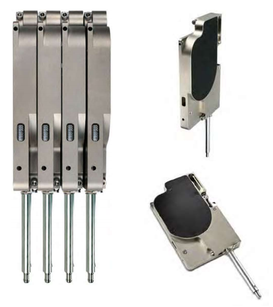 自动化移液工作站是一种通过精密机械臂和智能控制系统实现高精度液体处理的实验室设备,主要应用于药物研发(高通量筛选)、基因组学(核酸纯化)、临床检测(ELISA/肿瘤分析)及生命科学实验(PCR体系构建)等,显著提升实验效率并减少人为误差。 自动化移液工作站的基本组成和常用的功能模块有:整机框架结构,机械臂运动模块,耗材板位模块,移液模块,振荡模块,热振荡模块,温度控制模块,温控振荡模块,磁力架模块,PCR仪模块,紫外消毒模块,HEPA模块,抓取模块,扫码模块,管类载架模块,垃圾桶模块等,下面简单介绍一下这些功能模块。 整机框架结构是自动化移液工作站的主体,决定了仪器的整机尺寸和外观形态。其结构设计决定了仪器的使用方法,与实验人员的交互方式,操作的便利性,仪器通量的大小,使用场景等,因此是仪器设计中非常重要的一部分。整机框架结构包括仪器框架,仪器视窗,仪器安全门,仪器台面。客户希望能够买到一台功能全面的仪器,能够兼容更多的实验流程,这就要求仪器要做到模块化设计,高度可拓展性,能够根据实验需求灵活的切换台面配置。 功能:工作站的核心骨架和执行机构。通常包含精密的 XYZ轴线性导轨或机械臂,负责在三维空间内精确、快速地移动移液器模块、抓取模块或其他功能模块到指定位置。 关键技术点:XYZ轴的运动精度(一般要求0.2mm)、重复定位精度(一般要求±0.1mm)、运动速度、行程范围等核心指标。是整个工作站协调运作的基础。 主要结构形式:1)通常只有一个X轴(左右方向),主要的传动形式有:同步带传动,齿轮齿条传动,直线电机传动。 2)Y轴的数量不固定,取决于仪器搭载的移液模块,单通道移液模块和96通道移液模块只有一个Y轴,独立四通道移液模块就有四个Y轴,独立八通道移液模块就有八个Y轴。主要的传动形式有:同步带传动,齿轮齿条传动,直线电机传动,丝杆传动。 3)Z轴的数量同样不固定,跟移液模块相搭配,单通道移液模块和96通道移液模块只有一个Z轴,独立四通道移液模块就有四个Z轴,独立八通道移液模块就有八个Z轴。主要的传动形式有:同步带传动,齿轮齿条传动,丝杆传动。 功能:工作站台面上的固定或可移动区域,用于放置各种实验耗材。这是最基础的“容器”。 一般设计要求体积要小,能够兼容常用的标准耗材(96孔、384孔等微孔板,96孔PCR板,酶标板等),盒装吸头耗材, 关键点:设计需兼容标准耗材尺寸,定位精确,便于移液模块操作,方便抓取模块抓取,方便用户操作。 主要结构形式:一般有两种放置耗材的形式,一种是固定尺寸限位设计:结合耗材尺寸,预留一定微小间隙设计结构放置耗材;另一种是弹性结构设计:采用弹性结构压紧耗材边缘,耗材放置之后对中性好,位置准确。 功能:用于混匀微孔板中的液体,确保反应物充分接触。 关键点:振荡速度(100-4000RPM)、幅度(1mm,2mm,3mm)、振荡时间可编程控制、兼容常用SBS板类耗材。 主要结构形式:为了方便集成到移液工作站内部和节省工作站内部空间要求模块尺寸小,只占用工作站内一个工作板位区域。常见的有两种类型:一种是磁性振荡设计,振荡形式支持轨道和线性两种方式,模块结构尺寸小,模块负载相对小(<500g)。 典型产品 Inheco Teleshake; 另一种是电机带动偏心轴实现振荡原理,模块尺寸取决于电机尺寸大小,负载也取决于电机转矩大小,例如 奥盛Au-Shaker 5012L/3020L。 功能:结合了精确温度控制(加热)和振荡功能。主要用于需要孵育和混匀的应用,例如 PCR 反应前的模板变性、酶切反应、或某些结合/洗脱步骤。 关键点:升温速率、温度准确性、表面温度均匀性、温度范围、振荡速度(100-3000RPM)、幅度(1mm,2mm,3mm)、振荡时间可编程控制、兼容常用SBS板类耗材。 主要结构形式:振荡原理是电机带动偏心轴实现;加热原理是PI加热膜进行加热;某些产品具有耗材自动加持功能;产品尺寸上各有差别,但是相差不大。为了方便集成到移液工作站内部和节省工作站内部空间要求模块尺寸小,只占用工作站内一个工作板位区域。市场上典型产品:Inheco Teleshake 95 AC;奥盛Au-Shaker 3020TL,耐优MHS-12/20/30-S。 功能:提供精确的加热或制冷功能,维持微孔板、试管或反应模块在特定温度(如 4°C, 37°C, 95°C)。用于孵育、酶反应、等步骤。 关键点:升降温速率、温度准确性、表面温度均匀性、控温精度,兼容常用SBS板类耗材。 主要结构形式:模块性能要求升降温速度要快,控温精度要求高,表面均匀性要求高,所以一般都采用TEC模块来实现加热制冷功能,结合散热片和风扇进行风冷散热。为了方便集成到移液工作站内部和节省工作站内部空间要求模块尺寸小,只占用工作站内一个工作板位区域。典型产品:Inheco CPAC Ultraflat,Hamilton Heater Cooler,奥盛Au-Cooler,耐优MT-120-S, 功能:具有加热或制冷功能,同时也有振荡混匀功能,兼具温度控制模块和振荡模块双重功能。 关键点:升降温速率、温度准确性、表面温度均匀性、温度范围、振荡速度(100-3000RPM)、幅度(1mm,2mm,3mm等)、温度和振荡时间可编程控制、兼容常用SBS板类耗材。 主要结构形式:振荡原理电机驱动偏心轴转动实现振荡功能。加热或制冷功能一般有两种实现方式:一种是采用TEC模块+散热片风冷散热实现;另一种是采用TEC模块+液冷板+冷排,利用液冷散热。主要品牌有:Inheco Thermoshake AC,耐优 MTS-12/20/30,奥盛 SAu-Shaker 1530CL等。 功能:在特定板位下方或侧