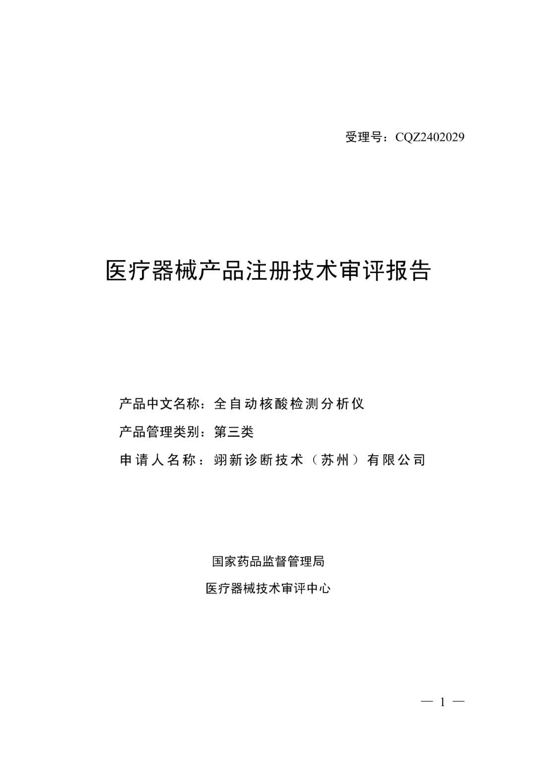 2025年9月29日,国家药监局批准了翊新诊断技术(苏州)有限公司的“全自动核酸检测分析仪”,注册证编号为:国械注准20253221958。 其预期用途为:该产品基于实时荧光PCR检测原理,与配套的检测试剂共同使用,在临床上用于对来源于人体呼吸道样本、生殖道样本和尿液样本中的靶核酸(DNA/RNA)进行定性检测,包括病原体项目。恭喜翊新诊断。 该仪器融合薄膜微流控技术与qPCR技术,最快可在45分钟内实现12种病原体的核酸检测。凭借产品的全自动化检测流程及封闭式设计,可广泛应用于医疗机构、疾控中心、海关检疫等场景。此次获批标志着翊新诊断在分子诊断自动化领域取得重大突破,有力推动了国内即时检测(POCT)核酸技术的标准化、自动化进程及其临床应用普及。 根据器审中心数据显示,该产品在2024年11月21号进入医疗器械优先审批申请审核结果公示(医疗器械优先审批申请审核结果公示(2024年第15号)),同意理由为:该产品属于“列入国家重点研发计划的医疗器械”。从公示到获批,历时11个月。 今天,器审中心公开了产品的审评报告,具体内容如下: |