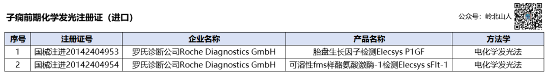 目前,市场常见的检测方法为化学发光法和免疫荧光两种方法学,真正实现化学发光检测的只有为数不多的几个厂家。其中罗氏诊断、美康生物、宁波奥丞、苏州新波、广州万孚均有sFlt-1及PlGF的两个注册证
