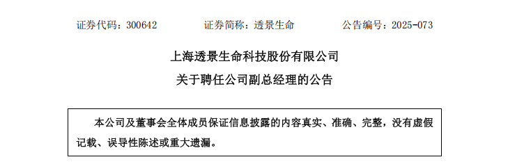 刚刚!康录生物总经理出任透景副总!