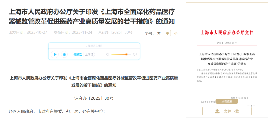 广告 11月24日,上海市人民政府办公厅印发《上海市全面深化药品医疗器械监管改革促进医药产业高质量发展的若干措施》,为加快促进上海市医药产业高质量发展,提出二十二条相关要求;无独有偶,11月24日,北京市经信局、北京市卫健委、北京市药监局、北京市医保局等六部门印发《北京市促进医疗器械产业高质量发展若干措施》,共十五条,自发布之日起实施,有效期至2028年12月31日。 支持医疗器械产业研发创新 从两地的《若干措施》条文来看,京沪两地均将研发支持置于政策首位,但其发力点与覆盖领域存在差异。 两地均构建了“资金扶持+平台支撑+协同机制”的研发支持体系。北京提出对符合条件的早期创新创业项目给予不超过100万元奖励,对进入国家或本市创新特别审查程序并获批的产品,单个给予最高200万元奖励;上海则聚焦细胞与基因治疗、人工智能医疗器械等重点领域,建立在研重点品种服务清单,提供全流程跨前指导。同时,两地都强调医工协同,北京支持组建医工交叉创新联合体,上海深化医疗、医保、医药协同,探索数据资源开放共享助力研发。 差异之处 北京:依托中关村科创资源,将奖励范围延伸至工业和信息化部揭榜挂帅等国家项目承担企业,单个企业年度奖励最高可达1000万元,同时明确支持医疗器械企业联合大模型企业开发行业大模型,按算力成本给予最高3000万元支持。 上海:专门设立中药研发创新条款,支持医疗机构中药制剂转化为新药,依托ISO/TC249等平台推动中医药国际标准制定,同时将脑机接口、粒子治疗设备等前沿领域作为重点扶持方向,与本地高端制造产业形成联动。 鼓励创新产品快速进入临床 在医疗器械创新成果转化中的临床应用、市场推广等方面,北京与上海均制定了精准的实施政策。 京沪两地都建立了创新产品快速进入临床的机制。北京将符合条件的产品纳入《中关村创新医疗器械产品目录》和《北京市首台套重大技术装备目录》,完善直接推荐入院流程;上海则提出“新优药械”从研发到使用的高效对接机制,将急危重症抢救不可替代新药的入院流程从30个工作日缩减至15个工作日,并推动创新产品及时纳入医保支付范围。 同时,两地设置了资金激励措施,北京对推广应用成效突出的企业按研发投入比例给予最高1000万元奖励,上海则对进口转本地生产且规模化成效突出的企业分级给予最高1000万元奖励。 差异之处 北京:以“产业集聚”为核心抓手,支持建设高品质产业承载空间和共性技术平台,对产业创新中心建设给予最高50%的投资支持,最高达5000万元,同时“一南一北”布局高端医疗装备培训示范基地,推广高端医疗装备创新和高质量发展成果。 上海:依托长三角一体化优势,将成果转化与区域协同深度绑定,推进长三角区域多中心临床试验伦理协作审查,实现药品医疗器械注册备案审评要求和检查标准统一、结果互认,为创新成果跨区域转化提供便利。 提升监管审评审批质效 在监管上,北京上海两地均对临床急需产品实行“即收即检”政策,北京将无源器械和诊断试剂检验时限缩至平均60个工作日,有源器械缩至平均90个工作日;上海则实现进口药品到港后3个工作日内抽样,第二类医疗器械首次注册平均周期压缩至6个月内。在审批流程上,两地都推行“并联审查”“减免检查”等措施,北京对同一地址已通过注册核查的新开办企业减免生产许可检查,上海对符合条件的第二类医疗器械变更和延续注册实施联合办理。 差异之处 北京:率先探索药品连续制造、生物制品分段生产试点,推进医疗器械唯一标识与医疗、医保衔接,建立创新药械上市后风险排查清单,构建全生命周期监管体系。聚焦产业链关键环节,通过“发榜出题+揭榜攻关”模式提升产业链韧性。 上海:通过“研检联动”为重点医疗器械提供注册体系核查预审服务,建设数字化监管平台,将AI技术应用于智慧审评和现场监管,同时明确对国家立项指南无法兼容的创新项目支持“附条件新增”立项,为前沿技术留足发展空间。将流感疫苗批签发时限缩至30个工作日。 激励企业出海 在支持企业出海方面,两地都将采取直接激励与服务优化措施。比如两地均对获得FDA、CE等国际认证并实现销售的产品给予资金支持,北京单个产品最高支持100万元,企业年度最高300万元;上海通过引进国际权威检测认证机构、发挥WHO预认证实验室优势,为企业提供全球认可的检验服务。同时,两地都拓展了出口销售证明的出具范围,便利产品出口。 差异之处 上海:积极配合国家药监局申请加入国际药品检查合作计划(PIC/S),推动长三角地区监管标准统一和结果互认,支持企业在综合保税区开展保税维修业务,打造国际化的产业服务体系。培育国际化CDMO企业,承接全球研发生产服务。 北京:对从国外引进落地生产的器械品种给予最高1000万元奖励,支持国际多中心临床试验在京开展,依托“一带一路”相关合作机制助力企业拓展新兴市场。通过资金补贴降低企业国际注册成本。 资料来源:上海市人民政府官网,北京市经济和信息化局官网 |