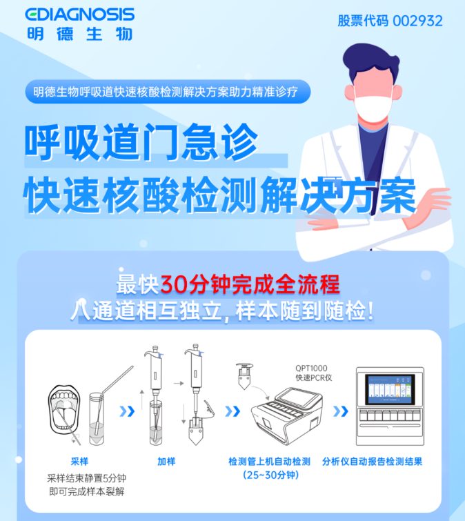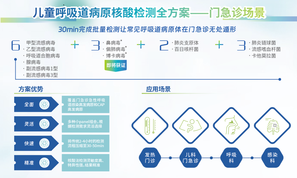 检测数量:1项 注册人:杭州优思达生物技术股份有限公司 技术原理:恒温扩增-实时荧光法 检测靶标:肺炎支原体 样本类型:咽拭子 检测时间:25min 注册证号:国械注准20233401997 注册时间:2023 试剂有效期:2℃~8℃保存,有效期为12个月。 (8)知微生物-呼吸道分子POCT快检方案
