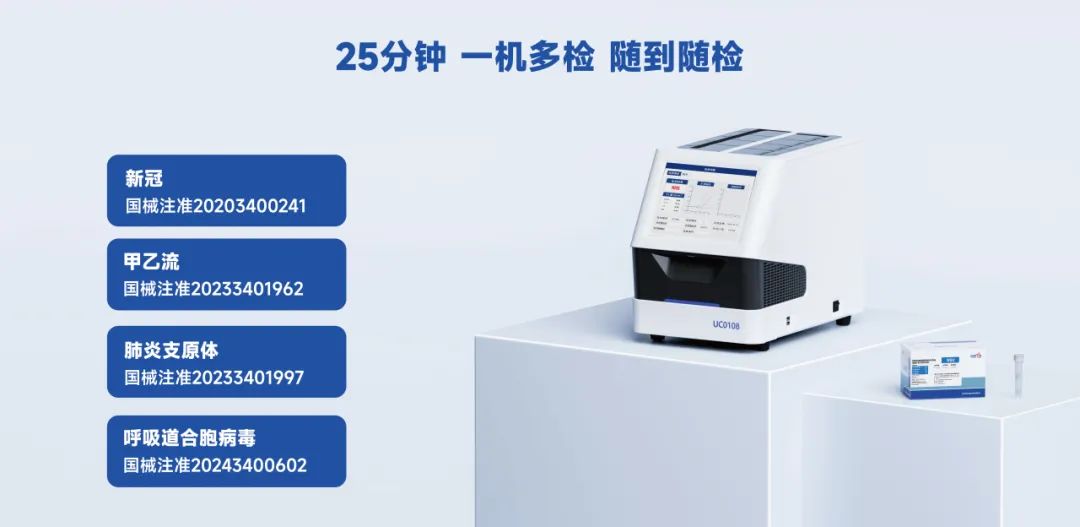 11月27日,中国疾病预防控制中心发布的《全国急性呼吸道传染病哨点监测情况(2025年第47周)》显示,在全国门急诊流感样病例中,流感阳性率接近45%,整体进入中流行水平,部分省份已达高流行水平。 (7)优思达-呼吸道分子POCT快检方案 优思达-甲型/乙型流感病毒核酸检测试剂盒(恒温扩增-实时荧光法) 检测数量:2项 注册人:杭州优思达生物技术股份有限公司 技术原理:恒温扩增-实时荧光法 检测靶标:甲型流感病毒、乙型流感病毒 样本类型:咽拭子 检测时间:25min 注册证号:国械注准20233401962 注册时间:2023 试剂有效期:2℃~8℃保存,有效期为12个月。