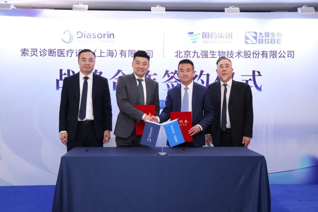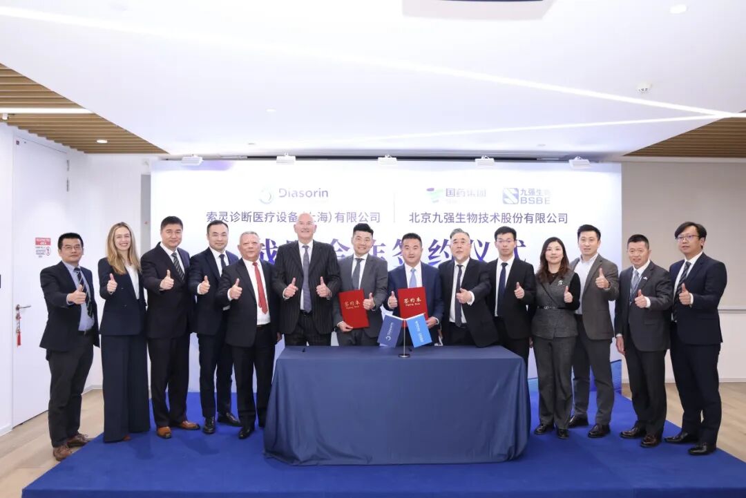 2025年12月3日,国内体外诊断领军企业北京九强生物技术股份有限公司与全球知名诊断公司索灵诊断(Diasorin)正式签署战略合作协议。双方秉持“平等互利、优势互补、长期共赢”的核心原则,强强联合、深度协同,共同开启精准诊断领域创新发展新篇章,为全球医疗健康事业注入强劲动力!