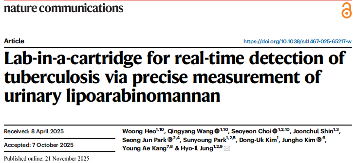 近日,来自韩国的研究团队在杂志Nature communications上发表了一篇题为“Lab-in-a-cartridge for real-time detection of tuberculosis via precise measurement of urinary lipoarabinomannan”的文章。作者提出了一种便携式生物工具LIC系统,用于尿液中脂阿拉伯甘露聚糖(LAM)的POC检测。采用比色反应,LIC实现半定量LAM检测,可在40分钟内在尿液样本中达到低至0.01 pg/mL的检测阈值。LIC在临床尿液样本中区分结核病患者的灵敏度为92%,特异性为88%,AUC(高准确度)可达0.91。这种开创性的设备不仅为检测低LAM浓度设定了改进的标准,而且还具有实现结核病分散诊断的潜力。