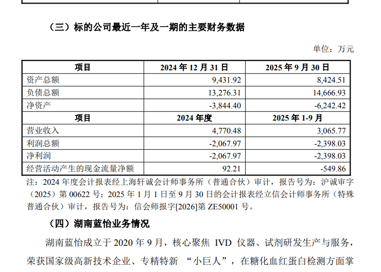 | 1月19日晚,武汉明德生物科技股份有限公司发布公告,宣布通过增资及股权收购方式,以3570.10万元取得蓝怡(湖南)医疗器械有限公司(下称“湖南蓝怡”)51%股权,实现控股。此举标志着明德生物在医疗器械领域进一步拓展业务版图,加码慢病管理赛道。根据公告,本次收购分为两阶段进行:首期收购完成后,明德生物将持有湖南蓝怡51%股权,标的公司成为其控股子公司,纳入合并报表范围。若湖南蓝怡在2026年至2028年满足特定经营条件,明德生物将进一步收购其剩余股权,最终实现100%全资控股。湖南蓝怡成立于2020年9月,是一家专注于体外诊断(IVD)仪器、试剂研发生产的高新技术企业,拥有糖化血红蛋白高效液相色谱法(HPLC)等核心技术,相关产品已获市场认可。财务数据显示,湖南蓝怡目前仍处于投入期,2024年及2025年前三季度净利润均为亏损,但伴随国家将糖化血红蛋白检测纳入老年体检项目,其市场前景被看好。公告披露,本次交易定价基于评估机构出具的收益法评估结果,标的公司全部权益评估值为5100万元。明德生物表示,此次收购有助于公司实现“急危重症+慢病管理”业务协同,完善产业链布局,提升对医疗机构的全流程服务能力,同时拓展海外与基层市场。值得注意的是,交易协议中设置了业绩承诺与估值调整机制:若湖南蓝怡2026年营收未达约定目标,转让方需进行补偿;若2026年业绩增长符合预期,明德生物将相应调增收购对价。此外,若2026-2028年平均净利润超过3000万元,管理层还可获得超额奖励。明德生物在公告中也提示了相关风险,包括业务整合不及预期、商誉减值、二期收购条件未达成等不确定性。公司表示将积极推进后续整合,防范经营风险。此次收购是明德生物在IVD领域纵深布局的重要一步,也是其构建“院前-院中-院后”全流程服务体系的关键举措。市场关注后续整合成效,以及湖南蓝怡能否在政策利好下实现业绩转折。