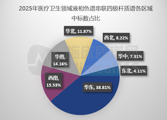 2025医疗卫生领域LC-MS/MS各区域中标量占比,
