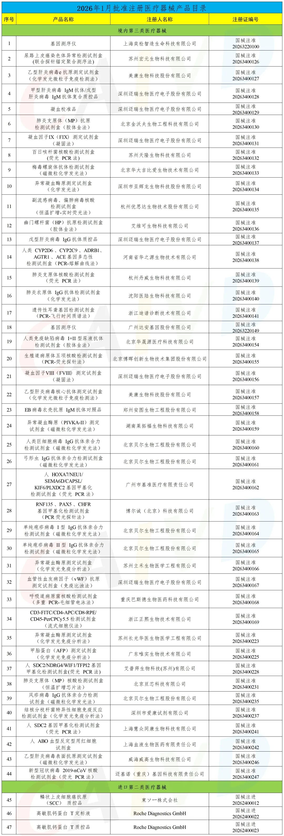 47款IVD产品获批!(2026年1月)(2026年第20号)