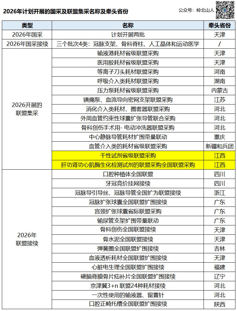 江西省医保局在2026年的联盟集采中承担重要牵头角色,具体包括:- 负责2025年到期的肝功生化试剂联盟采购的接续工作。