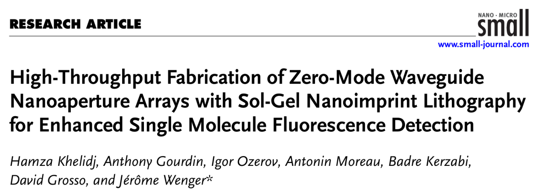 Khelidj, H., et al. (2025). High-Throughput Fabrication of Zero-Mode Waveguide Nanoaperture Arrays with Sol-Gel Nanoimprint Lithography for Enhanced Single Molecule Fluorescence Detection. Small, e10587.