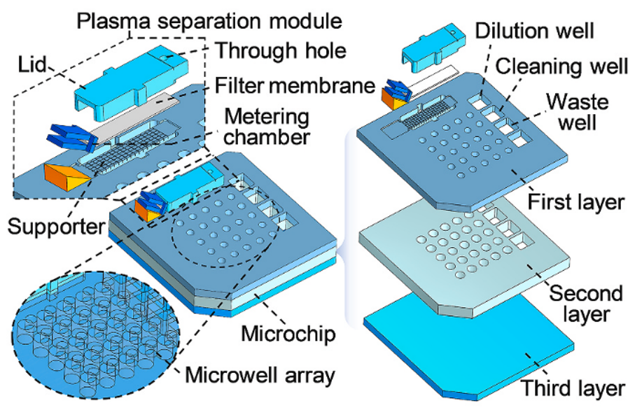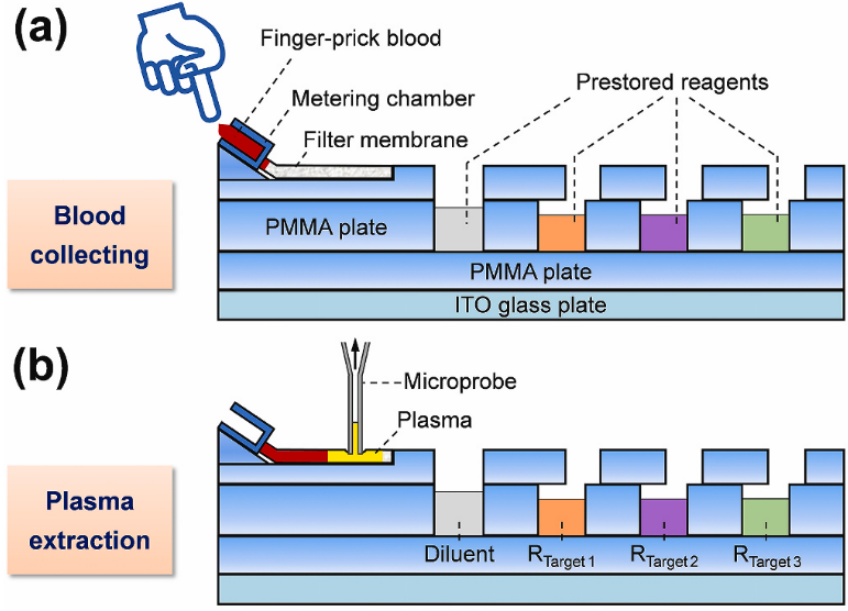 作者将基于滤膜的血浆分离技术与微流控技术相结合,实现了微量血液中的血浆定量提取。
