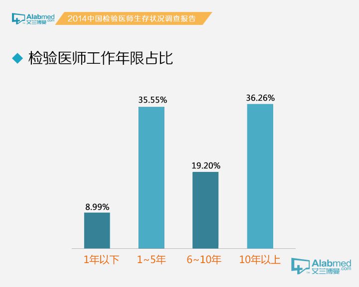 1年以下工作年限8.99%、1~5年35.55%、6~10年19.20%、10年以上36.26%。