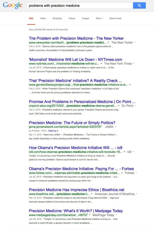 “精准医疗”实际上就是“个体化医疗”的一个新提法:意思是给所有人在正确的时间,用上正确的药。不过,因为是奥巴马提出的,而且还在提出的时候给出了一定的政府投入,所以就有了品牌,有了影响力,似乎也有了“理论根据”,国内一窝蜂地涌上去拥抱这个概念,大会小会不断,都拿精准医疗说事。 美国人并不买账,用"the problem with precision medicine" 为关键词,简单Google一下就会发现几乎各大报纸都有文章提出质疑这个“运动”: ![]() 问题在哪里?正如纽约客杂志的文章说的: “however, the excitement surrounding personalized medicine has outpaced the science.” 问题是美国人在经历过基因组工程完工带来的失望(没能真正产出什么实用的医药)以后,对这类的政客口号很自然的先打问号。 类似的“运动”几乎历届美国总统都发起过,从尼克松的“向癌症宣战”,到克林顿庆贺人类基因组工程完工。奥巴马也没有拿出多少钱,区区两亿美金造势的钱,就能让我们众多科学家欢欣鼓舞?我很怀疑这个运动的背后是一些美国的测序公司。 我认为,如果用打靶来比喻精准医疗,真正的精准应该是指哪打哪,而现在的所谓精准医疗却是打哪指哪。 ![]() 真正的精准医疗对诊断的要求最高,不是单纯的诊断,而是鉴别诊断。要知道病因,而且还知道细分到个体水平的疾病病情。其次,药物在研发,使用的各个阶段都是个体化的。这样才能百发百中。 现在的情形是,诊断远远不够精准,无论是病因学诊断还是鉴别诊断都不到位。药物又都是已经根据不确定的,非个体化的诊断研发出来的。所以今天的“精准医疗”所能做的不是真正的去提高疗效,而最多只是能降低一些副作用。因为是针对现有药物的精准治疗,药已经研发出来了,弹已出膛了,所以谈精准,也就是打哪指哪了。 还有一个问题,就是提到精准医疗,大家马上想到测序,而且是基因组测序。其实,从父母那里遗传来的基因组并不包含所有疾病信息,基因突变也不是绝大多数疾病的起因。疾病,和健康一样,都是基因组和环境互动的结果。所以仅仅盯着父母给的那些“图纸”绝对不能得到精准医疗。 奥巴马和李克强一样,都是一个国家产品的超级销售经理。李克强访问南美,希望大家都买中国的高铁技术;奥巴马也要设法让全世界都买美国的测序技术。一个“精准医疗”的提法,拿出两亿一千五百万美金,就会让全球的科学家自愿地去宣传(因为有科研经费可以拿了),何乐不为呢? 别误会,我不是说精准医疗不对,不好。我是希望大家不要把美好的愿望当成现实,看清哪些东西是值得做的,哪些是我能做的。说概念,谁都会,精准医疗的概念中医里的辨证施治早就概括了,不是什么新东西。 拿肿瘤治疗来说,从手术,放疗,化疗,靶向疗法,到现在的免疫疗法,疗效逐渐提高,可是还都不是直接诊断病因的。肿瘤基因组测序项目也做了很久了,也没有提 供出更好的治疗方案,没有很好的靶点。许多“伴随诊断”的“个体化疗法”不是手到病除的良药,而是避免不必要中毒的下策。 “当今世界,在科学上的竞争也就是在商场上的竞争,创新带来的是巨大的经济效益有时比一场战争带来的都多很多。” 这是我几年前一篇博文的开场白。我是一个天生乐观的人,难得泼冷水。不过,我觉得大家真的应该清醒一下,别让一个快下任的美国总统忽悠了。 |