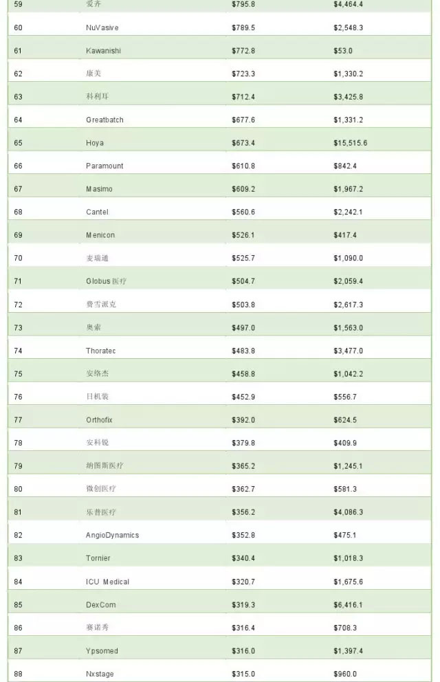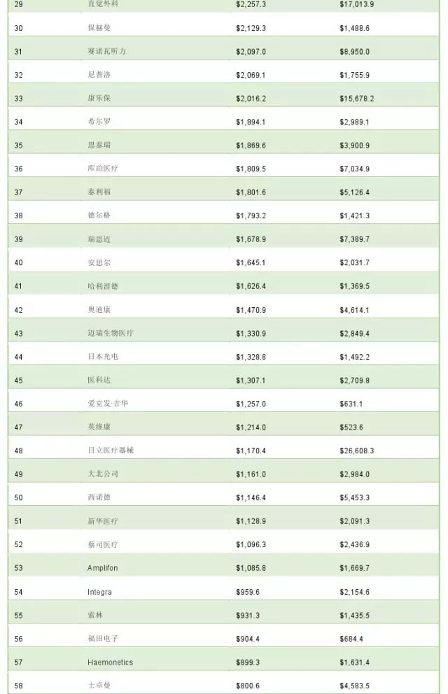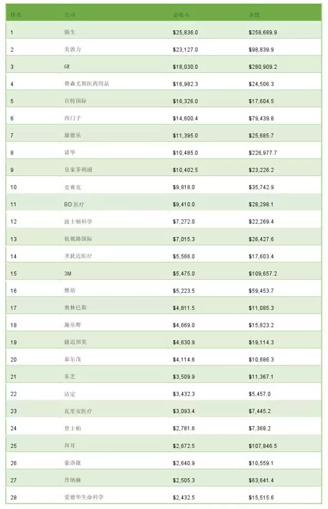 Qmed:2015年全球医疗器械公司TOP100
