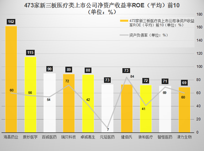 六、净资产收益率(ROE) 数据显示:企业平均净资产收益率(ROE)最高的是海昌药业,收益率高达162%,原妙医学以115%屈居亚军。其中,元延医药资产负债率过低只有7%,从发展角度来看,未来可通过适当增加资金杠杆等方式来进一步提高企业收益。