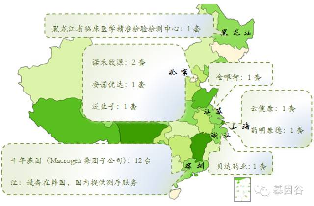 如此高大上的测序神器,能够拥有者自然是实力非凡,据基因谷调查,目前国内拥有HiSeq X Ten 并用于测序服务的企业有以下几家: