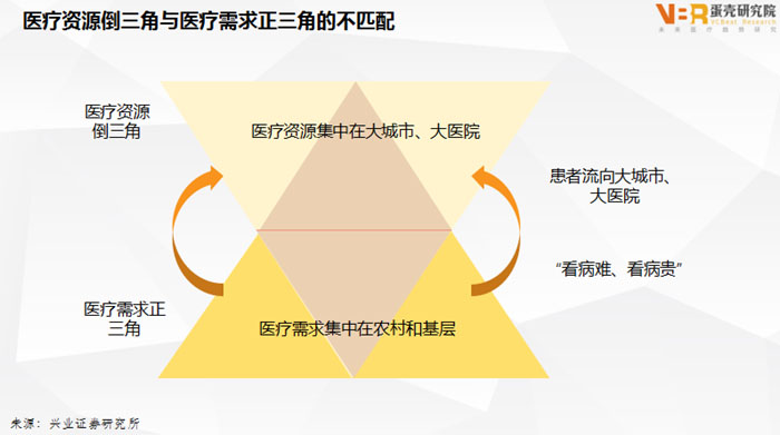 一、分级诊疗制度的背景 近年来,随着社会经济的发展与进步,我国正在经历着人口老龄化、城镇化的过程,居民基本健康需求增长迅速并呈现多样化的特点,给基本医疗卫生服务体系的建立与完善带来了挑战,主要体现在现有医疗服务体系布局不完善、优质医疗资源不足和配置不合理,不能有效满足激增的预防、治疗和康复、护理等服务需求。 据数据显示,目前我国80%的医疗卫生资源集中在城市,其中80%又集中在大中型医院,呈“倒三角”的资源结构,而医疗卫生服务的需求大部分在基层,呈“正三角”的需求结构。医疗资源的倒三角与医疗需求的正三角导至了看病难,而分级诊疗能有效解决这个难点,同时能控制小病大治的不良现象,与医药分开等政策结合控制医保费用。