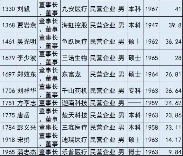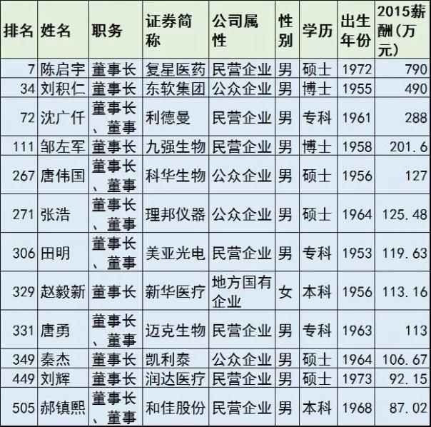以下为医疗器械行业相关的董事长们年薪榜单:
