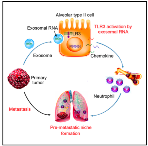 | 2016年的科研圈内,外泌体无疑是一颗闪耀的新星,在经济停滞、经费缩减的全球大背景下外泌体等新兴领域的研究却是一路高歌,如火如荼。诸如外泌体等囊泡的作用范围、功能作用等被接连报道,这使得外泌体作为细胞间通讯的“桥梁”被大众广为认识。回顾2016年,随着研究的不断深入,外泌体领域呈现出了相对清晰的格局,目前外泌体研究主要集中在细胞通讯介导细胞行为、生物标志物筛选、药物载体研发三大方向。在2016年最后的几天,外泌体之家运营团队虽然才疏学浅,但还是斗胆班门弄斧为大家整理了2016年外泌体领域十大前沿进展(排名不分先后),希望借此拾遗补艺,为大家做一个年终总结,希望能够抛砖引玉,引起大家的讨论。 1. Nature Nanotechnology:纳米级侧向位移微流控芯片可分离检测低至20纳米的外泌体 ![]() 确定性侧向位移(Deterministic lateral displacement,DLD)柱形微流控芯片是一种有效的检测分析和分离富集微米级颗粒的技术,包括血液中的寄生虫、细菌、血细胞和循环肿瘤细胞等。然而,这种技术在此前还没有应用到真正的纳米级,如能达到纳米级后就可用于分析生物胶体,比如外泌体等。 来自IBM、普林斯顿大学与西奈山伊坎医学院的科学家们合作利用可制造的硅工艺生产纳米级DLD(nano-DLD)芯片,产生均匀的间隙尺寸,其范围从25到235纳米。他们发现,在低Péclet (Pe)数情况下,扩散和确定性位移产生竞争时,nano-DLD芯片仍然可以灵敏地将20-110纳米的颗粒分开。 这项发表在Nature Nanotechnology(IF=35.267)的研究价值在于,该技术可以分离纳米级的生物颗粒,这比以前的分离技术小了50倍。这个前所未有的捕获能力可以使得医生们更容易地来分析纳米级的生物颗粒,如DNA、病毒和外泌体。而这些微粒,正是疾病(比如癌症)病症初期就能显现的迹象,这样在症状出现之前发现病症,将会得到更好的治疗。 参考文献:Wunsch, B. H., et al. (2016). "Nanoscale lateral displacement arrays for the separation of exosomes and colloids down to 20 nm." Nat Nano advance online publication. IF=35.267 2. Cell:细菌胞外膜泡传递LPS至宿主细胞浆内产生免疫反应 ![]() 先天性免疫对各种入侵的病原微生物能快速反应,同时在特异性免疫的启动和效应过程也起着重要作用。革兰氏阴性细菌会分泌直径为20-250纳米的胞外膜泡(outer membrane vesicles, OMVs)。胞外膜泡并不是细菌细胞壁损坏或裂解产生的副产品,而是细胞程序性产生的真正的分泌膜泡。胞外膜泡会促进病原微生物和宿主间的交流,并且脂多糖LPS是胞外膜泡最丰富的组成部分之一。胞质溶胶中的脂多糖(LPS)可激活caspase-11,并且对宿主防御革兰氏阴性细菌感染和败血症的发病极为重要。但是,能激活caspase-11的大多数革兰氏阴性细菌并不能进入胞质中。 来自康涅狄格大学的研究人员发现革兰氏阴性细菌产生的细胞外膜泡可作为载体递送LPS进入宿主细胞质,在体外和体内实验中触发caspase-11依赖性免疫反应。胞外膜泡通过内吞作用进入宿主细胞质,LPS从早期胞内体释放进入细胞质。利用胞外膜泡生成能力被严重削弱的细菌突变体,揭示了胞外膜泡在介导LPS到胞质的重要性。该研究结果表明胞外膜泡在革兰氏阴性细菌感染过程中传递LPS至宿主胞质然后活化caspase-11的关键作用。 参考文献:Vanaja S K, Russo A J, Behl B, et al. Bacterial Outer Membrane Vesicles Mediate Cytosolic Localization of LPS and Caspase-11 Activation[J]. Cell, 2016. 3. Cell:布氏锥虫通过细胞外膜泡传递毒力因子引起宿主贫血症 ![]() 动质体(Kinetoplastid)是一种附有鞭毛的原生动物,包含某些能使人类或其他动物发生严重疾病的寄生虫,如非洲昏睡病(布氏锥虫)、南美锥虫病(克氏锥虫)等。像许多细胞外的病原体一样,非洲锥虫感染最初引起包括炎症细胞因子的表达和骨髓细胞的活化在内的Ⅰ型免疫应答。这些宿主的免疫反应可解释锥虫病相关的贫血的病理,但引起红细胞清除的寄生虫因素在此之前并不清楚。 来自美国佐治亚大学的研究人员揭示了锥虫鞭毛膜出芽形成动态膜纳米管并形成细胞外囊泡。这些细胞外囊泡的蛋白质富含特定的鞭毛膜蛋白,并包含了一些与宿主体内的发挥毒力和抗性作用相关的蛋白质。该研究结果发现,细胞外囊泡导至了非洲锥虫病的复杂性,细胞外囊泡可在寄生虫之间和易被忽视的与宿主细胞之间传输毒力因子。这项研究工作揭示了非洲锥虫病的发病重要机制,为该疾病的治疗提供了新思路。 参考文献:Szempruch, A. J., et al. (2016). "Extracellular Vesicles from Trypanosoma brucei Mediate Virulence Factor Transfer and Cause Host Anemia." Cell 164(1-2): 246-257. 4. Cancer Cell:外泌体中具有传递肿瘤抗药性功能的lncRNA ![]() 肿瘤抗药性一直是一个困扰肿瘤治疗的问题。随着研究的深入,研究者发现外泌体在肿瘤抗药性过程中发挥着重要功能,外泌体通常可以从抗药性肿瘤细胞通过传递miRNA来赋予药物敏感性受体肿瘤细胞抗药性。lncRNA是近些年新兴的一个领域,随着研究的发展,越来越多的发挥内源性竞争RNA功能的lncRNA被发现。 舒尼替尼耐药是晚期肾细胞癌(RCC)治疗的一个难点。来自第二军医大学王林辉、王红阳等研究组的研究人员确定了一个与舒尼替尼抵抗相关的lncRNA(命名为lncARSR)。在RCC细胞中,lncARSR通过竞争性结合miR-34/miR-449来促进AXL和c-Met表达而赋予细胞舒尼替尼抗性。此外,具有生物活性的lncARSR可以被纳入外泌体并被传输到舒尼替尼敏